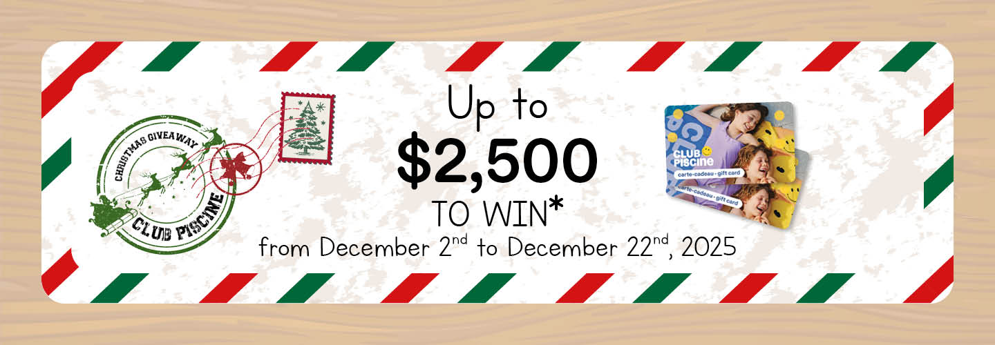 · The draw among our newsletter and social media subscribers will occur on December 23, 2024, and the winners will be announced on the same day in a Facebook and Instagram post on Club Piscine's accounts.