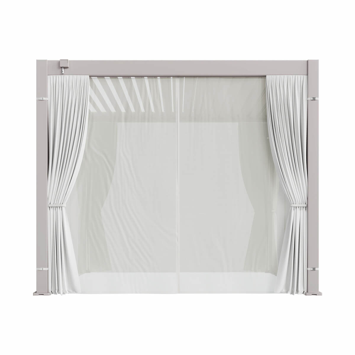 Turn the area around your pergola into a true relaxation haven with this set of curtains and mosquito nets. Stylish and practical, it provides protection from the sun and insects while bringing comfort and elegance to your outdoor moments.