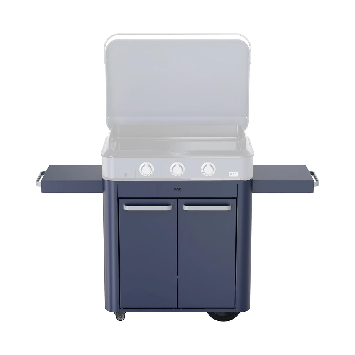 Transport and stabilize your ENOSIGN 80 plancha easily with this elegant navy blue cart. Practical, sturdy, and designed to simplify your outdoor grilling, just like in a professional kitchen.