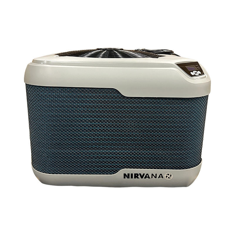 The Nirvana FC-60 60,000 BTU heat pump is a reliable, quiet, and durable unit, featuring an intuitive digital display, titanium heat exchanger, corrosion-resistant housing, and AHRI-certified efficiency. Designed for northern climates, it maintains warm water with reduced energy consumption and a minimal noise level of 42 dB.