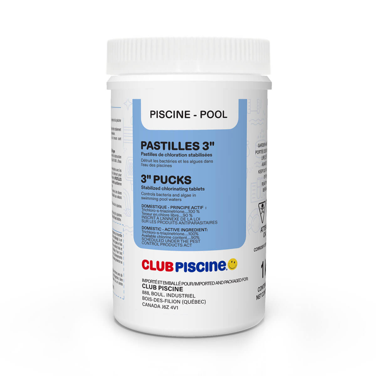 Stabilized chlorine pucks made by our experts team to destroy bacteria and algae inside your swimming pool.
