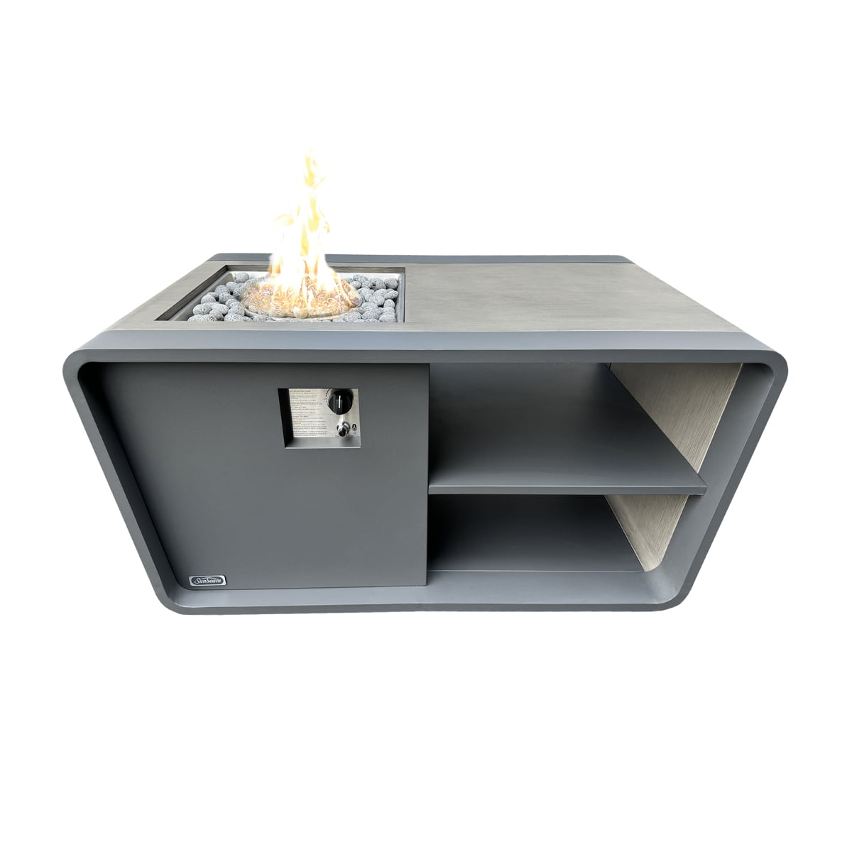 Bring warmth and elegance to your outdoor space with the Sterling Fire Table. Crafted from brushed painted aluminum, this modern and stylish table features a decorative glass top that adds a sophisticated touch to your terrace or garden. With its 50,000 BTU power, it ensures pleasantly heated evenings while offering a refined and practical design.