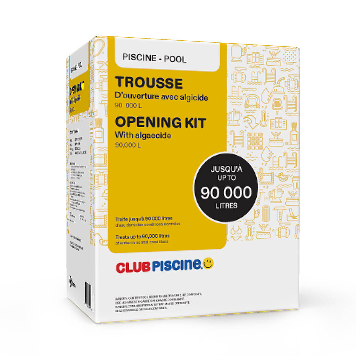 Super Performance opening kit treats up 90 000 liters of water under normal conditions. This kit includes all the products you need to keep your pool water clear and healthy!