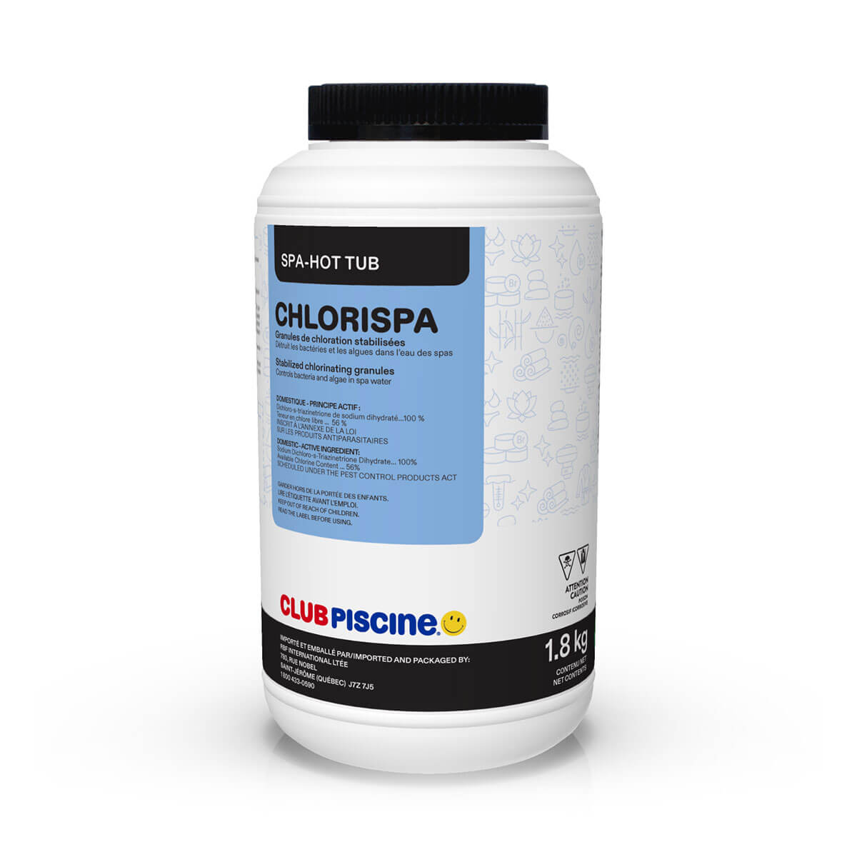 Granules de chloration stabilisées. Détruit les bactéries et les algues dans l'eau des spas.