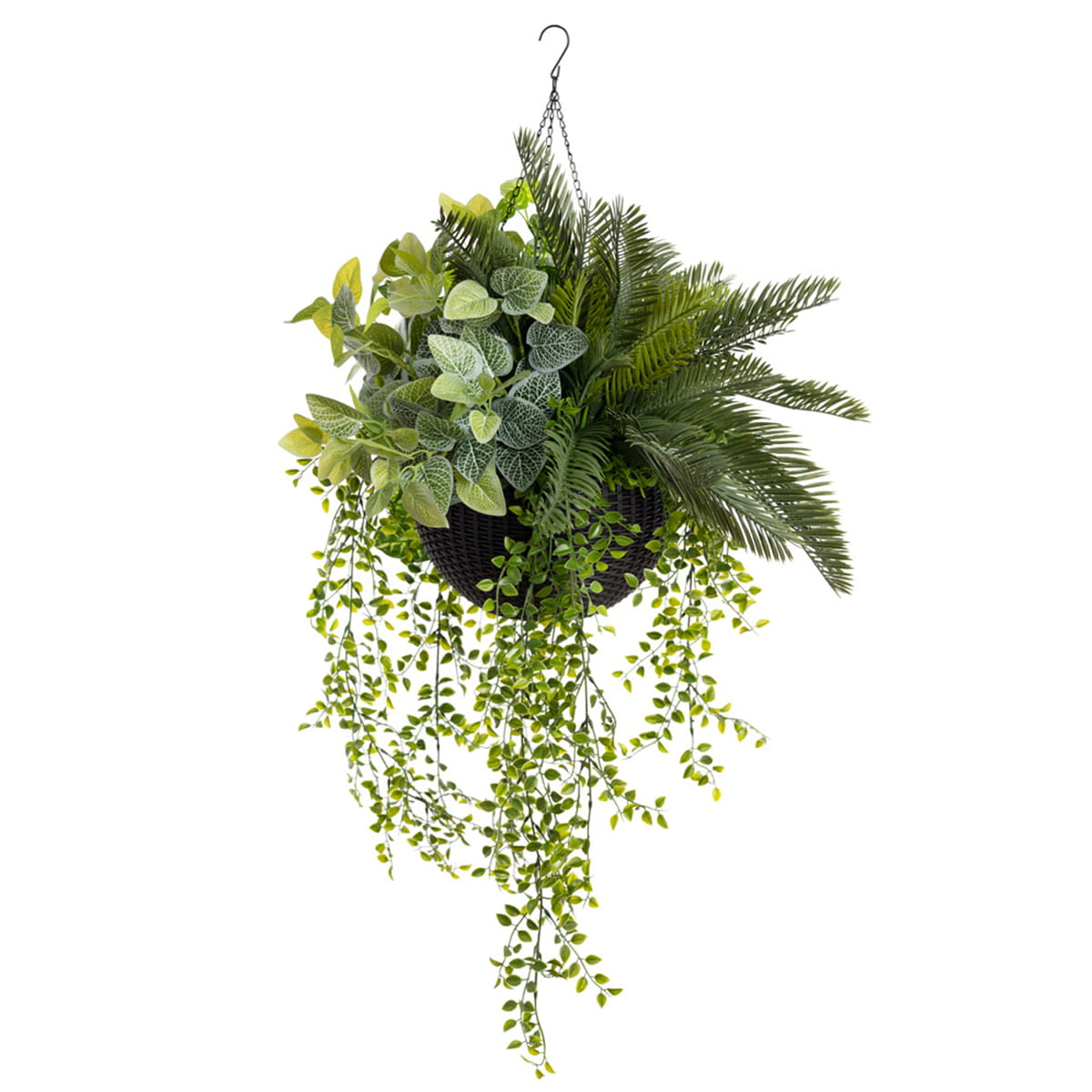 • Design: Jardinière suspendue de fittonia et verdure mixte; artificielle.