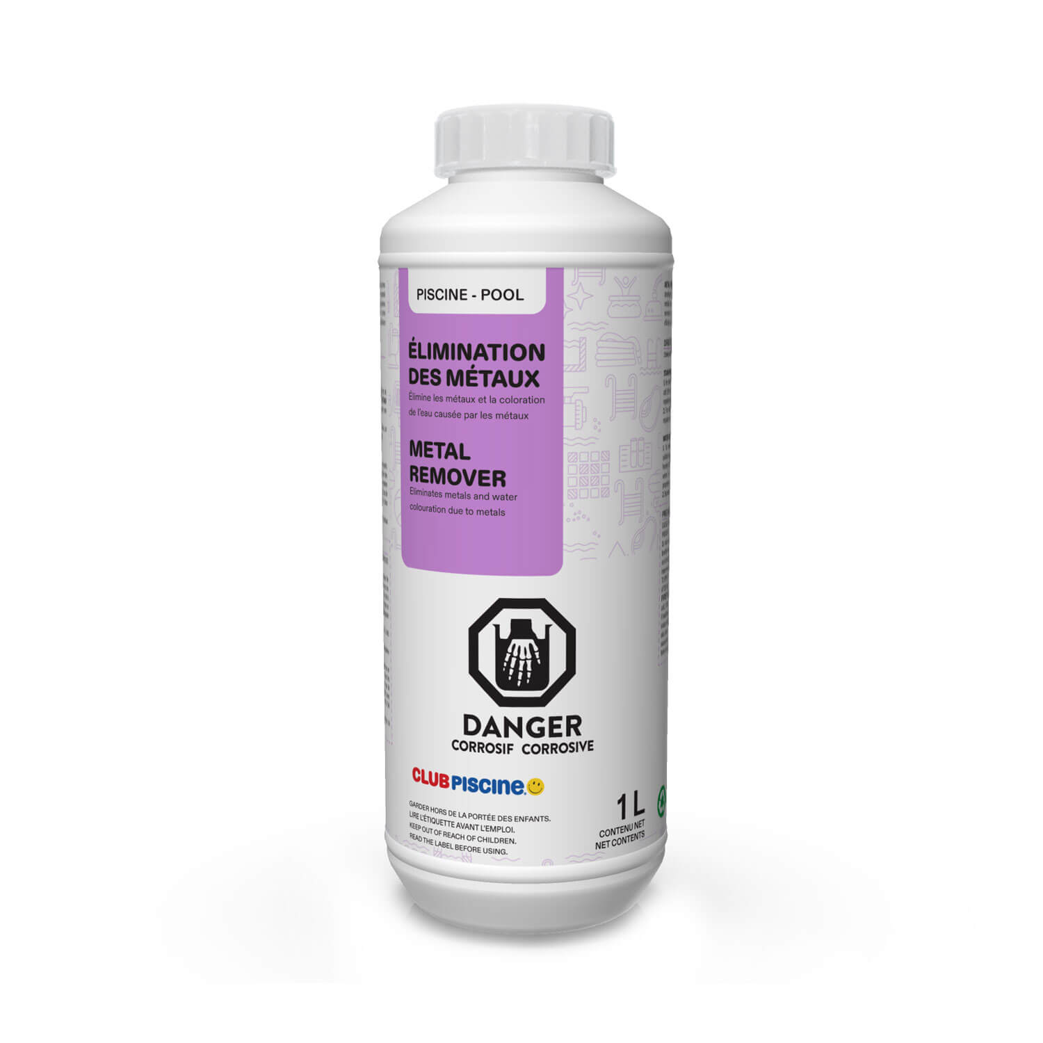 Cette solution élimine les métaux dans l'eau des piscines et prévient les taches causées par les métaux. Elle prévient la formation de tartre et la corrosion dans les chauffe-eau de piscine et les chlorinateur au sel.