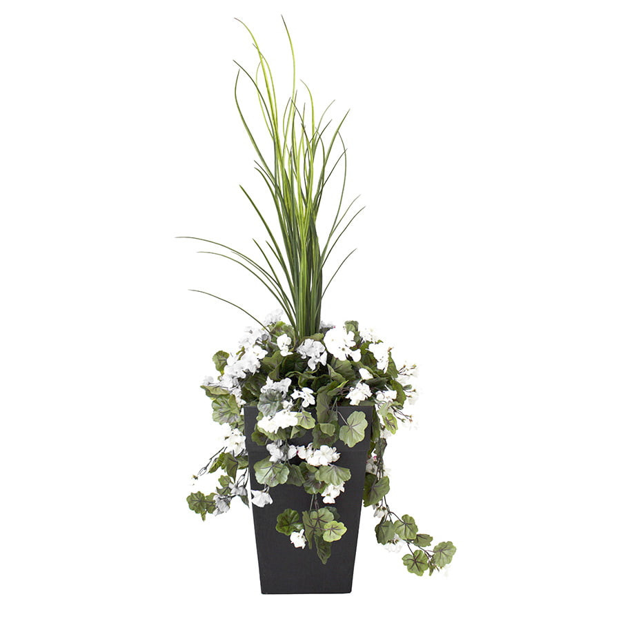 Pour apporter une touche de couleur à votre terrasse ou votre gazebo, quoi de mieux qu'un bel arrangement floral artificiel en pot!