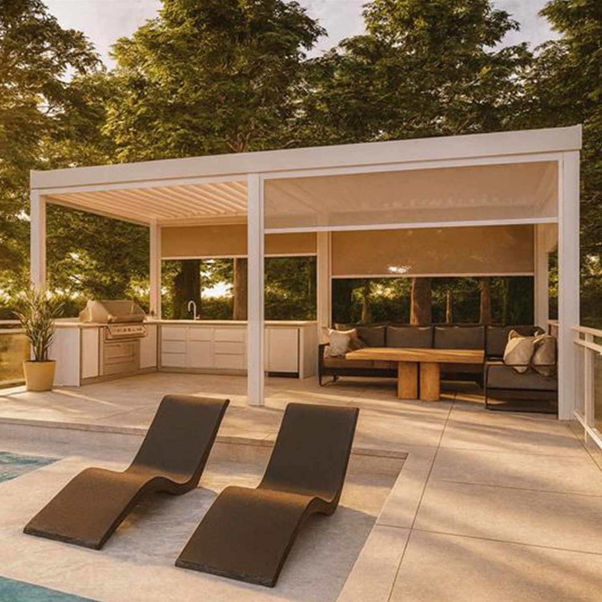 Avec son design contemporain et intemporel, Orana offre une liberté de configuration, de grandes portées et une finition soignée. Son système de louvres orientables permet de moduler efficacement la lumière naturelle et la ventilation, tout en assurant une protection optimale contre les intempéries. Chaque détail est pensé pour une intégration architecturale harmonieuse et une expérience extérieure haut de gamme. C’est une solution d’élégance sur mesure qui répond aux exigences techniques, esthétiques et fonctionnelles les plus élevées.
