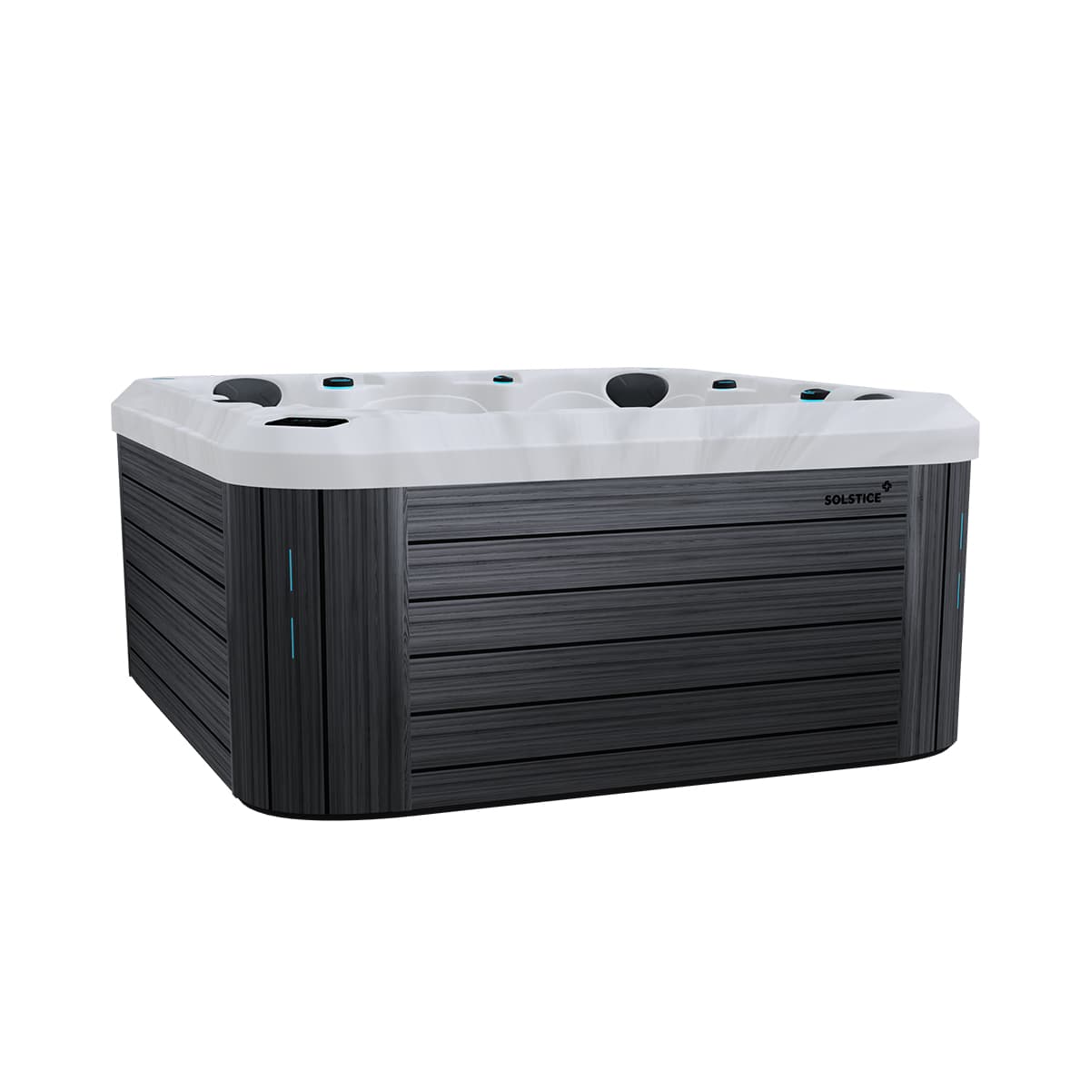 Les spas SOLSTICE sont équipés de trois types de jets, offrant une variété de massages ciblés pour le dos et les jambes, spécialement conçus pour favoriser la détente. La plupart des modèles intègrent également des jets métacarpiens, idéals pour un massage précis des mains, ainsi que le puissant jet Vulcano, conçu spécifiquement pour soulager les hanches et les muscles abdominaux. Tous ces jets haute performance sont stratégiquement positionnés afin d’optimiser leur efficacité et de procurer une expérience de relaxation profonde, agissant sur l’ensemble du corps.