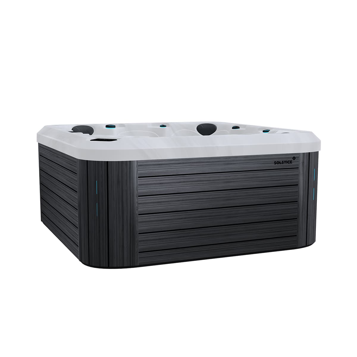 Les spas SOLSTICE sont équipés de trois types de jets, offrant une variété de massages ciblés pour le dos et les jambes, spécialement conçus pour favoriser la détente. La plupart des modèles intègrent également des jets métacarpiens, idéals pour un massage précis des mains, ainsi que le puissant jet Vulcano, conçu spécifiquement pour soulager les hanches et les muscles abdominaux. Tous ces jets haute performance sont stratégiquement positionnés afin d’optimiser leur efficacité et de procurer une expérience de relaxation profonde, agissant sur l’ensemble du corps.