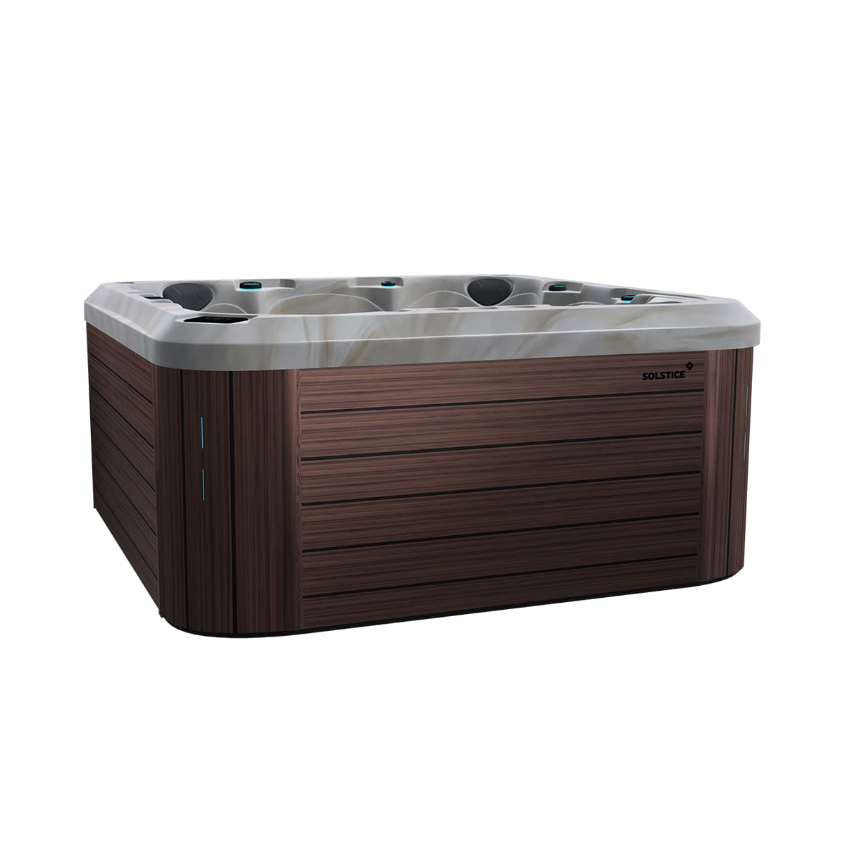 Les spas SOLSTICE sont équipés de trois types de jets, offrant une variété de massages ciblés pour le dos et les jambes, spécialement conçus pour favoriser la détente. La plupart des modèles intègrent également des jets métacarpiens, idéals pour un massage précis des mains, ainsi que le puissant jet Vulcano, conçu spécifiquement pour soulager les hanches et les muscles abdominaux. Tous ces jets haute performance sont stratégiquement positionnés afin d’optimiser leur efficacité et de procurer une expérience de relaxation profonde, agissant sur l’ensemble du corps.