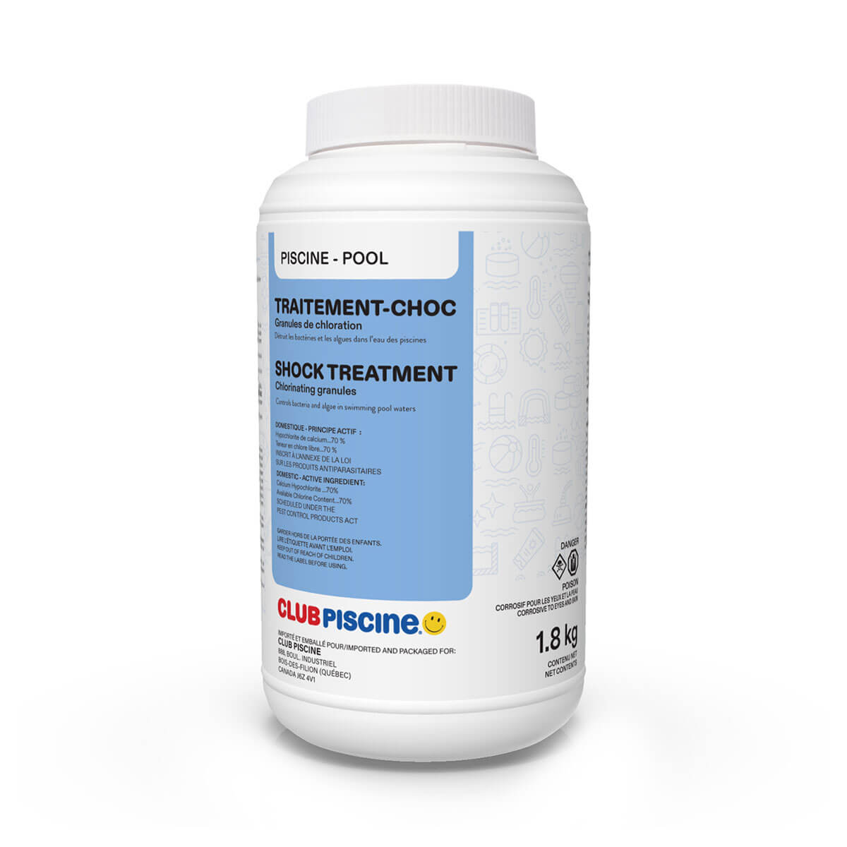 Le traitement-choc sous forme de granules de chloration concentrées à 70% détruit les bactéries et les algues à l'intérieur de votre piscine.