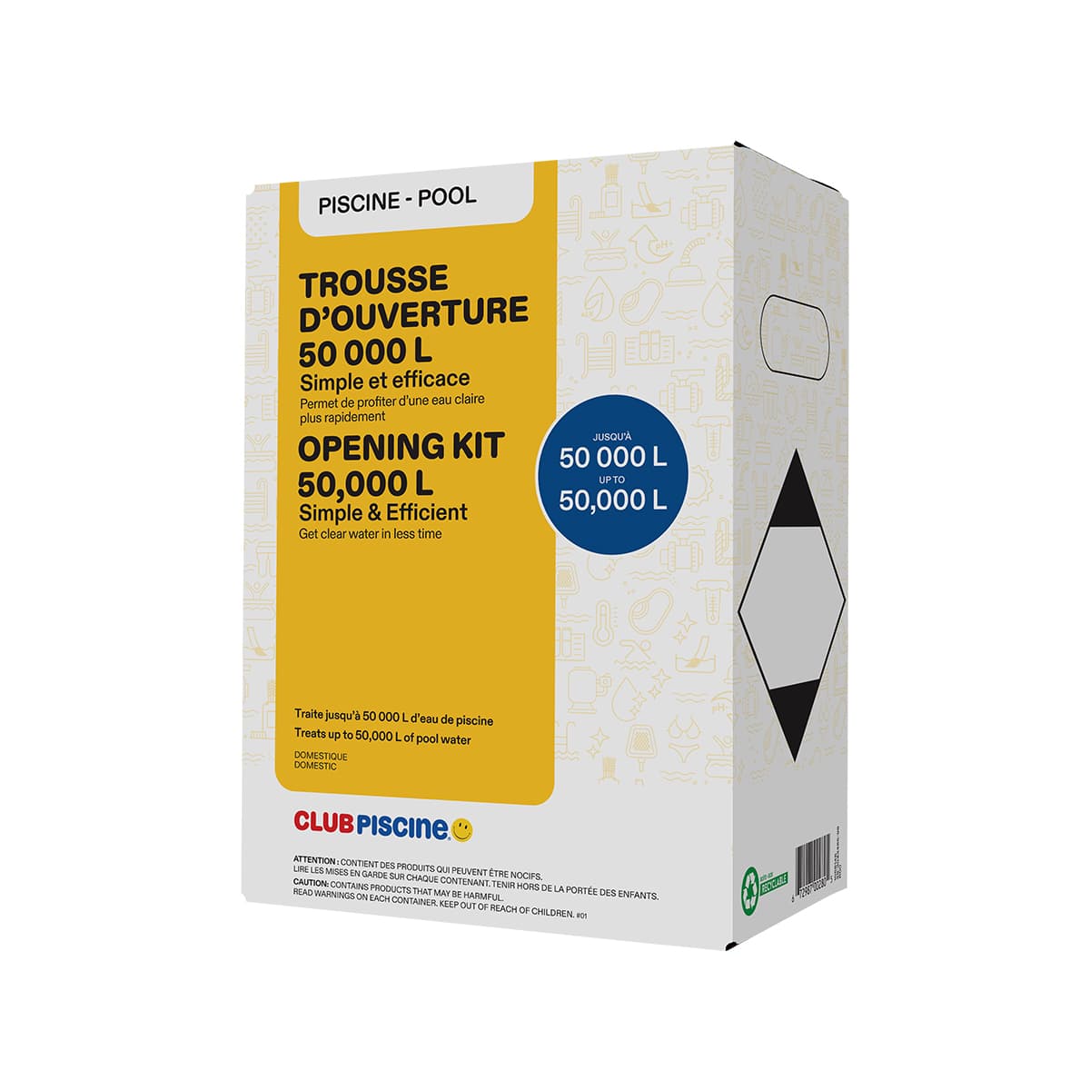 Cette trousse a été conçue pour vous permettre d'effectuer facilement et efficacement l'ouverture de votre piscine et d'ainsi débuter la saison de baignade du bon pied. Seulement 48 heures après l'application des produits, vous retrouverez une eau claire. Idéal pour les piscines de moins de 50 000 litres d'eau.