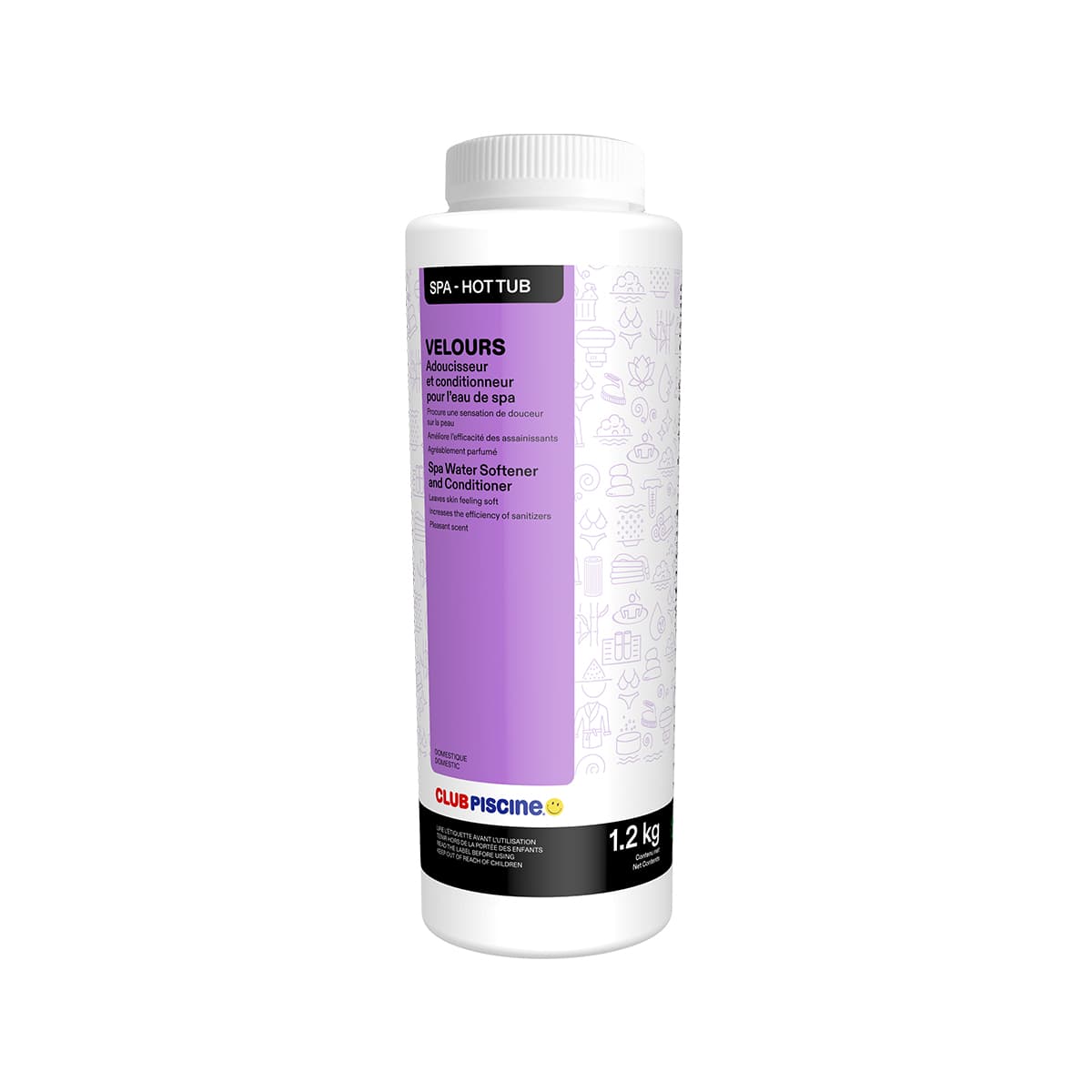 Velours augmente le confort et rend l'eau agréable pour les baigneurs. Il apporte des bienfaits d'aromathérapie avec ses extraits de fleurs et d'agrumes. Sa formule au pH équilibré n'affecte pas les paramètres de l'eau. Ce produit optimise l'efficacité des assainissants, augmente la solubilité des sels dans l'eau et protège les surfaces contre la corrosion. Sa formulation le rend compatible avec tous les types d'assainissant.