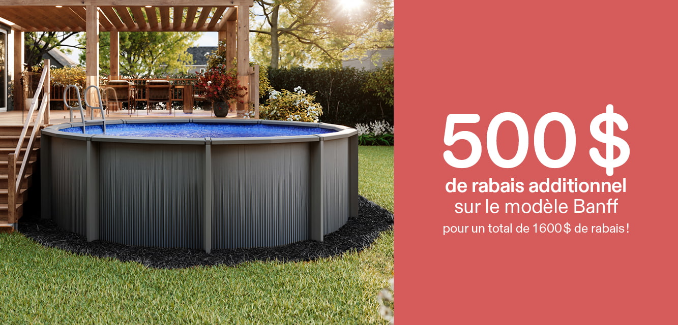 *Les offres Week-end en folie sont valides les 11 et 12 avril 2026, en magasin seulement. Taxes en sus. Les conditions de financement et les taux d’intérêt peuvent être modifiés en tout temps par les institutions financières. Détails en magasin. L’offre « Économisez 1 100 $ sur les piscines hors terre » prévoit un rabais de 1 100 $ à l’achat d’une piscine hors terre, ainsi qu’un système au sel AquaNature 50 000 L gratuit, d’une valeur de 800 $ (PTR 182411), offert à l’achat d’une piscine équipée admissible à la promotion. La gratuité du système au sel s’applique uniquement aux modèles compatibles avec un système au sel et exclut les modèles en acier Soho, Maho et Orizon. Une chute illuminée Starfall (valeur de 655 $) est offerte gratuitement à l’achat d’une piscine en résine de marque Carvin incluant la pompe et le filtreur de marque Carvin. Installation de la chute en sus. Jusqu’à épuisement des stocks. Détails en magasin. L’offre « Économisez 15 % sur les toiles de remplacement pour piscines hors terre et creusées » s’applique aux modèles sélectionnés. Le rabais ne s’applique pas sur l’installation. § L’offre « Jusqu’à 300$ sur les thermopompes » s’applique aux modèles sélectionnés seulement. — Ces offres ne peuvent être jumelées à aucune autre promotion et s’appliquent au prix régulier seulement. Non applicables aux achats antérieurs. Les produits et les promotions peuvent varier d’un magasin à l’autre. Offres non valides dans les centres de liquidation. Photos à titre d’illustration seulement.Les quantités peuvent être limitées. Le marchand se réserve le droit de modifier ou d’annuler toute offre sans préavis. Malgré le soin apporté cette publication, des erreurs peuvent s’y être glissées. En cas de divergence, les informations en magasin prévalent.